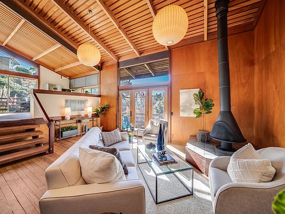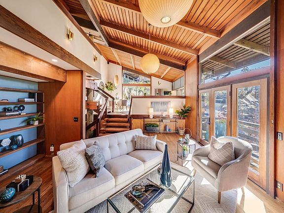 Experience the unique allure of this Organic Modernist masterpiece nestled in the heart of Berkeley Hills. This 3-bedroom, 2-bathroom gem, harmoniously blends with its environment, with expansive glass openings that create a perfect indoor-outdoor space. As you enter the home, youre greeted with beautiful hardwood throughout, high vaulted ceilings, illuminated by an abundant of natural light.