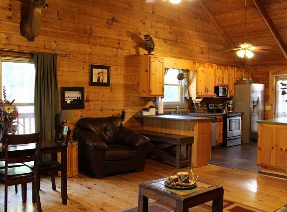UPDATES INCLUDE: FENCED IN BACKYARD (2009) NEW HVAC (2010) NEW BACK DECK (2011), NEW GRANITE SINK (2011), NEW SLATE FLOOR IN KITCHEN AND NEW APPLIANCES (2012), NEW COUNTERTOPS AND VANITY IN MASTER BATH (2015), CONCRETE SLAB AND WHEELCHAIR RAMP (2016), REPLACED WINDOWS (HULLCO LIFETIME WARRANTY-2016), REFINISHED AND RE-SEALED THE OUTSIDE OF THE CABIN WITH LIFETIME PERMACHINK STAIN - PROFESSIONALLY DONE (2016)
