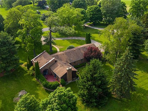 First time on the market in over 25 years! Sprawling, brick ranch with architectural details and lots of outdoor living space. The home features 2 large entertaining living spaces. First, there is an oversized, sunken, formal living room with exposed, brick walls, a ceiling to floor brick fireplace, cathedral wood plank, ceilings and sliding doors leading you out to a patio. Second there is an oversized family room with cathedral ceilings and wood beams, a wall of windows, a brick fireplace and sliding doors leading you out to the large patio area. The kitchen comes with all the appliances and opens into the dining room. The dining area has a large window overlooking the front yard and there is a desk area with built ins. There is an office/study type room looking into the family and a nearby bedroom with a wall of built bookcases and desk area. The master bedroom has a wall of closets and the master bath comes with double sinks, jacuzzi tub and stand alone shower. Partial basement.