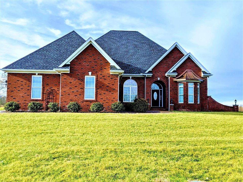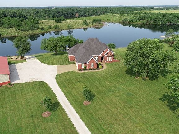 This gorgeous 3 bedroom 2.5 bath 3537 sq. ft. single level brick home built in 2014 sits on 11.53 acres and overlooks a beautiful 40 acre lake. You will appreciate the amenities and quality details found throughout this home from the moment you step inside. Home features Brazillian Teak hardwood flooring throughout the home, an open floor plan featuring 12 ft ceilings in the foyer, formal dining room, great room, kitchen and breakfast area. The formal dining room easily seats 8 people. The great room has a gas fireplace with mantle, a 65 inch built-in tv above the mantle and large bookcases on either side. The kitchen is very spacious with an island and beautiful Amish built maple cabinetry extending to the 12 ft ceilings, granite counter tops, and KitchenAid appliances including, refrigerator, dishwasher, oven/microwave combination and a second oven under a 5 burner gas cooktop. The breakfast area offers a lake view and plenty of room for easily seating 8 people. Home also features an enclosed sunroom for year round relaxation and enjoyment, offering a panoramic view of the 40 acre lake. Just off the kitchen and breakfast area are 2 large bedrooms with a full Jack & Jill bathroom featuring Amish cabinetry and granite countertop. Just off the foyer is a beautiful office with a wall to wall bookcase and a 12 ft coffered ceiling. Next is a huge master bedroom with tray ceiling, a master bath featuring wall to wall granite countertop, double sinks and mirrors, over-sized walk-in shower and a large spacious walk-in closet . Home has a whole house back-up generator, a premium zoned HVAC system with a natural gas furnace, natural gas water heater, and water softener. Home sits on a conditioned crawl space that keeps floors warm in the winter and cool in the summer. The large garage has room for 2 vehicles with plenty of room to spare. The property also has a 40ft X 80ft (3200 sq. ft.) pole barn with 3 overhead doors (each with its own door opener). The pole barn features a 15ft X 40ft (600 sq. ft.) in-law suite with master bedroom and bath, second large ½ bath with laundry area, living room, kitchen and a lake view. Also just before entering the guest quarters is a 613 sq. ft. recreational room for entertaining guests, having parties, playing games or just hanging out watching tv and throwing darts. Rec room is complete with heat and air conditioning. Located just 14 miles from the Eastside of Evansville, this home is a must see!!!