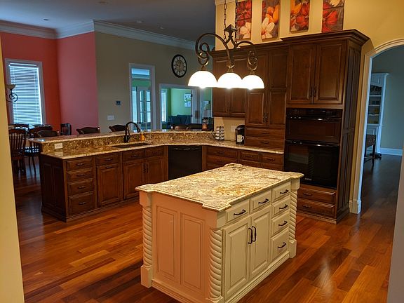 - Ceiling Fan(s), Breakfast Bar, Kitchen Island, Walk-In Closet(s), Great Room, Beamed Ceilings, Stone Counters, Eat-in Kitchen, Formal Dining Room, Crown Molding, Bookcases, Entrance Foyer, Tray Ceiling(s), Wired for Data, Open Floorplan, Tub/Shower Combination, 1st Bdrm En Suite, Ceiling-9+, Main Level Bedroom Suite, Stand Up Shower, Guest Quarters, Twin Sink Vanity, Utility Sink, Pantry-Walk In