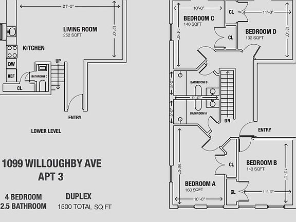 Welcome to 1099 Willoughby Ave, Unit 3 a bright and well-laid-out 4-bedroom, 2.5-bathroom duplex in the heart of Bushwick, Brooklyn. Perfect for roommates or anyone looking for extra space, this home offers both comfort and convenience in one of the neighborhood's most desirable locations. Apartment Features: Spacious duplex layout Four equal-sized bedrooms, each with a window Two full bathrooms plus a convenient powder room for guests Smart layout ideal for co-living or working from home Pet-friendly (upon approval) Building Amenities: Shared laundry room Bike storage Furnished roof deck with great neighborhood views Located near the Jefferson St (L) and Central Ave (M) subway stations and a few blocks away from Maria Hernandez Park, this apartment puts you in the center of Bushwick's vibrant arts, dining, and nightlife scene.