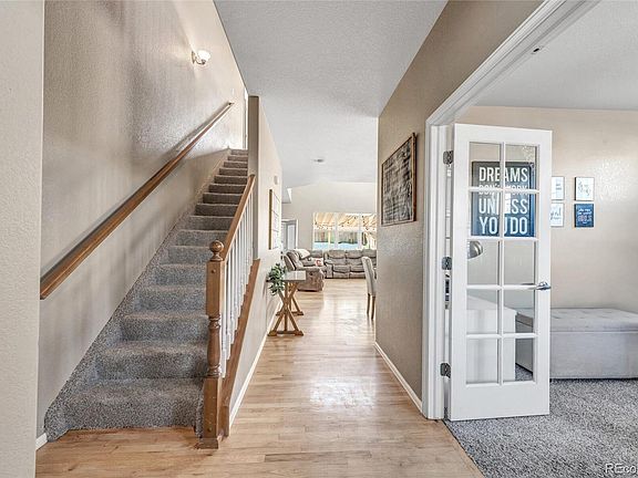 Don't walk, run to this open and inviting 3-story home in coveted River Run subdivision. Relax on your new covered front porch or on either of your covered or uncovered back patios. As you walk in, the openness of the two-story ceilings offers natural light and the feelings of home. The dream kitchen has everything you want: granite counters, custom backsplash, stainless steel appliances, tons of cabinets, huge island AND a breakfast bar and large pantry, plus it opens to the back patio for outdoor entertaining. The main floor office with French doors allows private work from home space. The second floor master bedroom has cathedral ceilings, 5-piece master bathroom and large walk-in closet. This home has a thoughtfully finished basement for additional living space. The location can't be beat with easy access to shopping, DIA airport, E-470, highway 76. Approximately 25 minutes to downtown Denver. Call for your private showing today!