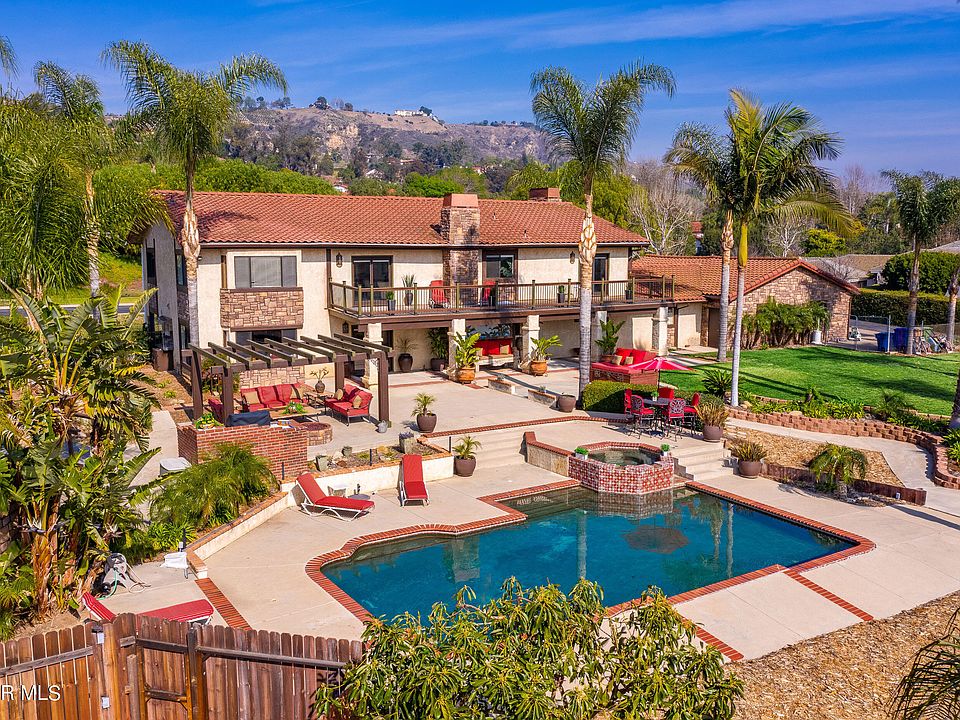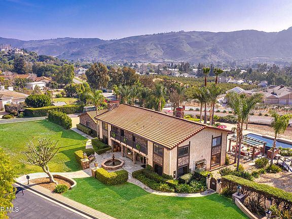 Entertainer's Paradise! AMAZING VIEWS! Fantastic Estate located in the prestigious gated Las Brisas community in beautiful Santa Rosa Valley! This amazing property is situated on a sweeping corner lot with spectacular panoramic views! A grand courtyard with fountain welcomes you before you enter through the double doors to the foyer with custom stone flooring. Featuring over 5,200 sqft of living space all on ONE ACRE with 5 BEDROOMS, a HUGE BONUS ROOM and 4 BATHROOMS, AMAZING VIEWS, an 8 CAR GARAGE with possible R,V access, POOL/SPA and ZONED FOR HORSES! THIS ESTATE HAS IT ALL! Stunning wood floors and walls adorned with venetian plaster are just some of the upgrades. The living room with its beautiful custom hand carved columns, wood floors, and custom fireplace accent the room. The family room with cozy fireplace, has amazing views of the back yard and mountains. Light and bright kitchen has been upgraded and has custom pendant lighting, newer appliances and center butcher block island with loads of storage and is open to the breakfast area with window seat. The formal dining room is perfect for those wonderful intimate dinner parties. There are 2 BEDROOMS, a POWDER ROOM AND A FULL BATHROOM DOWNSTAIRS . Upstairs you will find the HUGE BONUS ROOM with oversized balcony which stretches the length of the house! Just step out, sit and enjoy the tranquility and privacy. The MASSIVE 1,200 sqft MASTER RETREAT has a floor to ceiling stone fireplace, separate sitting room, built-ins and has access to the balcony at the front of the house to enjoy the Northern views! Resort style backyard with many different sitting areas to entertain. Sparkling pool and spa, pergola, a foot bridge and plenty of room for horses! Paved driveway leads to the 8 car garage! Welcome home! Nestled in the center of Santa Rosa Valley, with excellent schools .This truly is a one of a kind property.