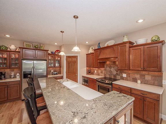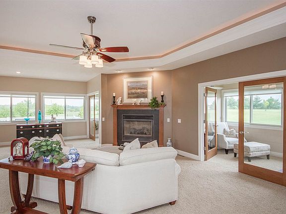 Beautiful home ~ Beautiful Setting ~ Beautifully Maintained. Set on 1.3 acres this large 3 bedroom, 4 bath home has an open floor plan and over 3700 finished Sq. Ft. of living space. The oversize 3 car garage has step-less entry as well as a main floor laundry. Anderson windows, 6 panel oak doors and a storm shelter. Walkout finished basement or enjoy the view from your 12 X 24 deck. Numerous updates!