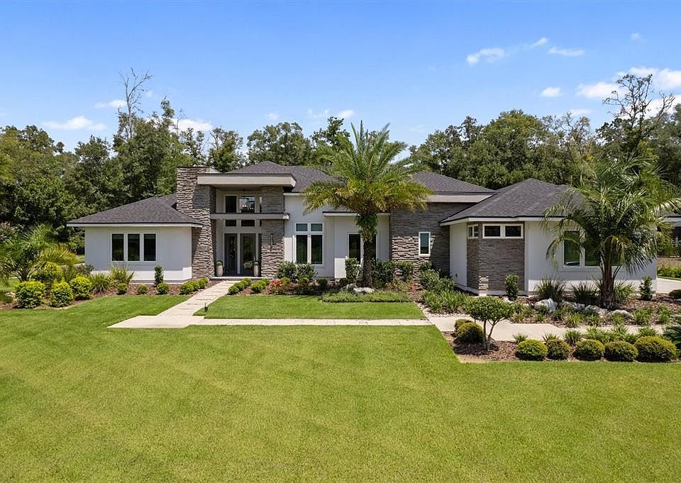 Former AR Model Home by Arthur Rutenberg Homes featured in the 2022 Parade of Homes offers Florida living at it's finest! Situated on a 1-acre corner homesite, this estate home in Oakmont features 4 bedrooms, 4.5 bathrooms, den/office, bonus room, 3-car garage, and a resort style outdoor living space. Clean lines, contemporary materials and extensive use of glass set the stage for this wide open, welcoming home. High ceilings draw the eye up while pocketing walls of glass extend the space horizontally, leading from the main living area to the covered cabana and lanai. A centrally-located kitchen offers stunning views to the pool and manicured backyard and boasts a floating ceiling with back lighting, commercial grade appliances, quartz countertops and a large island with seating creates an ideal home for entertaining. A walk in pantry offers a 2nd refrigerator, built in shelving and a built-in countertop/cabinet "appliance" station. A strategically located den in the front of the home offers large windows with impressive views. This corner lot overlooks a large community common area to the front allowing for maximum privacy. Guests will love their VIP suite with kitchenette, seating area, dinette space, walk in closet and en suite bathroom. The owner’s suite offers spacious luxury away from it all featuring a beautifully appointed bathroom, walk in closet with double islands that directly connects to an oversized laundry room and home delivery center with private entrance. 740 sq ft of lanai/cabana space is fully covered and features a linear gas fireplace, summer kitchen, pool, spa, and sunshelf. The 1-acre lot has dense viburnum planted on the rear and sides property lines for maximum privacy. The heated and cooled 3 car garage has epoxy floor finish and (2) overhead motorized storage racks. The whole house generator, landscape lighting, speakers, security cameras, custom window coverings (some motorized) are just a few added features of this stunning AR home. Oakmont also hosts an array of remarkable amenities including tennis and basketball courts, beach volleyball, an amphitheater, fitness center and a resort-style swimming pool with dedicated lanes and a lap pool. Children will love the playground and splash pad! What’s more, an expansive multi-purpose activity field awaits your adventures. All of this splendor is masterfully arranged around a magnificent Resident Club at located at the heart of the community.