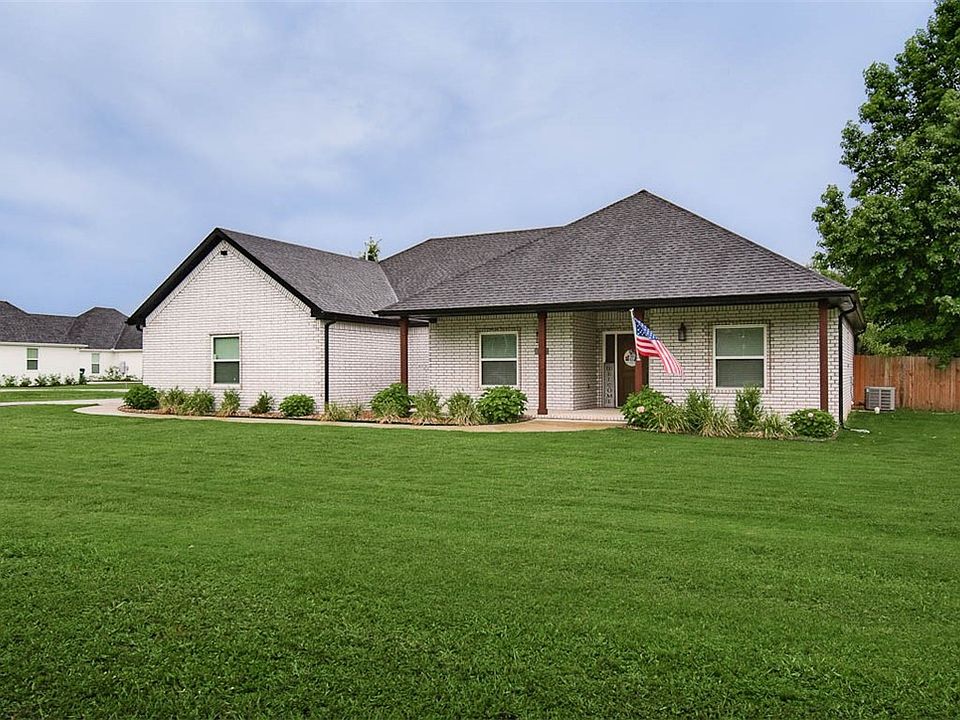 Large lot with mature trees & landscaping. Home construction in 2020 custom built with upgrades including oversized pantry and large open kitchen concept with island. Split floor plan with open dining and living space, master suite includes his and her closets. Secure safe room within demised space . Oversized, covered rear porch with natural gas hook ups. Washer, Dryer, and Refrigerator convey. Exterior detached barn, includes electrical outlets, exterior lights (just needs electric service from house to structure and make a great workable shop). Highway 170 to be upgraded by the state of Arkansas to include pubic sidewalks and road improvements . Seller related to list agent.