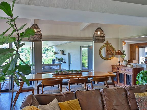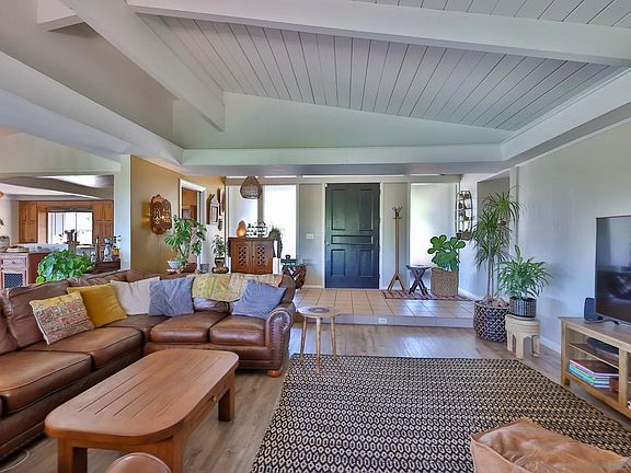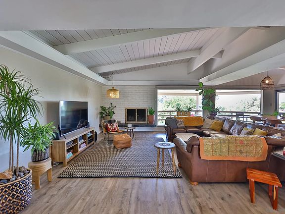 If you don’t love cookie-cutter McHouses, you’re going to love this one. How do you feel about a one-story mid-century ranch? Yes, please! This entertainer’s dream sits on the backside of Mt. Helix on just over 1/2 an acre. Floor to ceiling windows allow for unobstructed southwest views. A nature lover’s paradise with tons of birds and wildlife. Established orange, lemon, fig and grapefruit trees give abundant fruit. Feels rural, yet city close and convenient to shopping and freeways. Huge wrap around deck with cover, perfect for relaxing with your favorite beverage in the mornings and evenings. Have out of town family or friends? Invite them to sleep in the king-size bed in the new, stationary guest trailer that is fully hooked up and equipped for visitors- allowing them their own privacy and space. Much of the not-so-fun home owner upgrades have been taken care of: New roof; huge new custom aluminum deck cover, with built-in lights; new central A/C; new split unit A/C in office/bedroom; new Belgard retaining walls; new exterior paint; entirely new septic system (tank and leech lines); new electrical panel set-up for future spa; 2000+ sq ft of Belgard pavers throughout front, side and back yard; and newer flooring and furnace to boot. Bonus: There’s tons of parking (which isn’t always the case in the Mt. Helix area). Come experience for yourself what a home with good energy feels like.