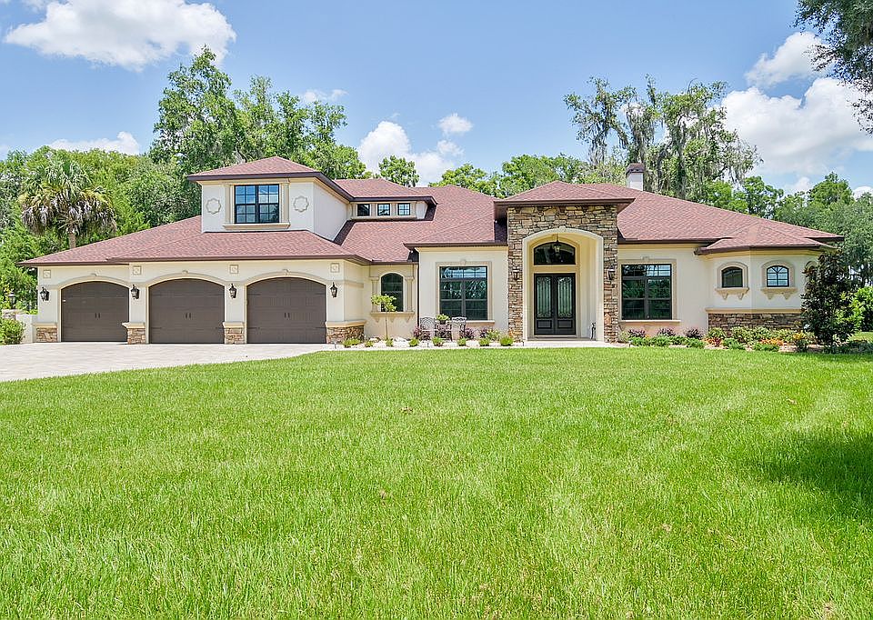 Crystal River waterfront living at its finest! This 2019 custom-built home offers an amazing open waterfront view of Lake Rousseau, home of the best bass fishing in Florida. Take a short boat ride up the lake to the Rainbow River and enjoy the crystal clear water perfect for snorkeling or just floating down the beautiful river. This Mediterranean-style home is located in a very desirable gated community situated on 1.21 acres so you will have plenty of privacy and space to enjoy unspoiled Florida nature. Leading up to the home you will notice the brick-paved driveway, 3 car attached garage, & the fully landscaped yard. Once you enter the front doors you will be greeted with quality craftsmanship, with 10' to 14' vaulted ceilings. The kitchen is a chef's dream, as there is plenty of space and cabinets, granite counters, stainless appliances, island, double convection oven, walk-in pantry, wine bar and a coffee bar, breakfast nook & windows that offer you the perfect view of the lake. The great room features a gas fireplace, wood floors & an amazing view overlooking the backyard and lake. With almost 4,000 square feet of living area, there is plenty of room to spread out as this home features 4 bedrooms, 3.5 bathrooms plus a home office. The screened lanai is perfect for entertaining or just to enjoy your morning cup of coffee. The covered boat dock will keep your boat safe from the Florida sun. Be sure to watch the 3D tour. Flood insurance is not required for this home.