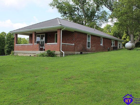 Selling will be a brick ranch home having 2 bedrooms, full bathroom, kitchen, dining room, family room, and a utility/mud room. The home has laminate, tile, and carpet floor covering, propane gas furnace, central air, and covered front porch. Improvements include a 20ft x 20ft outbuilding, blacktop driveway, and county water. The home and improvements are situated on 3.923 acres with blacktop frontage on Hwy 54, just approximately 10 miles south of Rough River State Lodge.