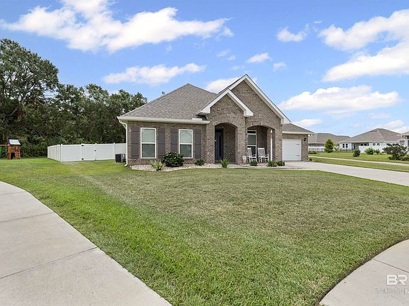 Rare Find in Jubilee Farms – The Lot Everyone WantsThis stunning 5-bedroom, 3-bath + bonus room McKenzie plan by D.R. Horton offers 3,113 sq ft of thoughtfully designed living space on a .49-acre corner cul-de-sac lot — the one the neighbors wish they had. Built in 2022, this all-brick beauty sits on one of the most coveted lots in Jubilee Farms, backing up to expansive common area for unmatched privacy and views you can’t replicate.Step inside to find LVP flooring throughout, soaring tray ceilings with crown molding in the living room and primary suite, and a gourmet kitchen with a large island, granite countertops, stainless appliances, and a walk-in pantry. The spacious primary suite features a luxurious tiled shower, soaking tub, dual vanities, and a massive walk-in closet. French doors lead to the bonus room / formal living room, perfect for a home office, media space, or playroom. For added comfort the bedroom layout is a split plan and every bedroom has ceiling fans.Enjoy year-round outdoor living on the screened-in back porch with extra Concreted added overlooking your fully fenced backyard with extended green space beyond the property line. The formal dining room adds elegance for entertaining, while the open-concept layout keeps everyday living easy and connected.Living in Jubilee Farms means access to resort-style amenities — zero-entry pool with slide, clubhouse with gym, yoga room, and more — all within minutes of shopping, dining, and award-winning Belforest Elementary, Daphne Middle, and Daphne High Schools.This is more than a home — it’s a rare lot, a perfect layout, and a lifestyle you won’t find again. Buyer and or Buyers agent needs to verify anything important to them. Buyer to verify all information during due diligence.