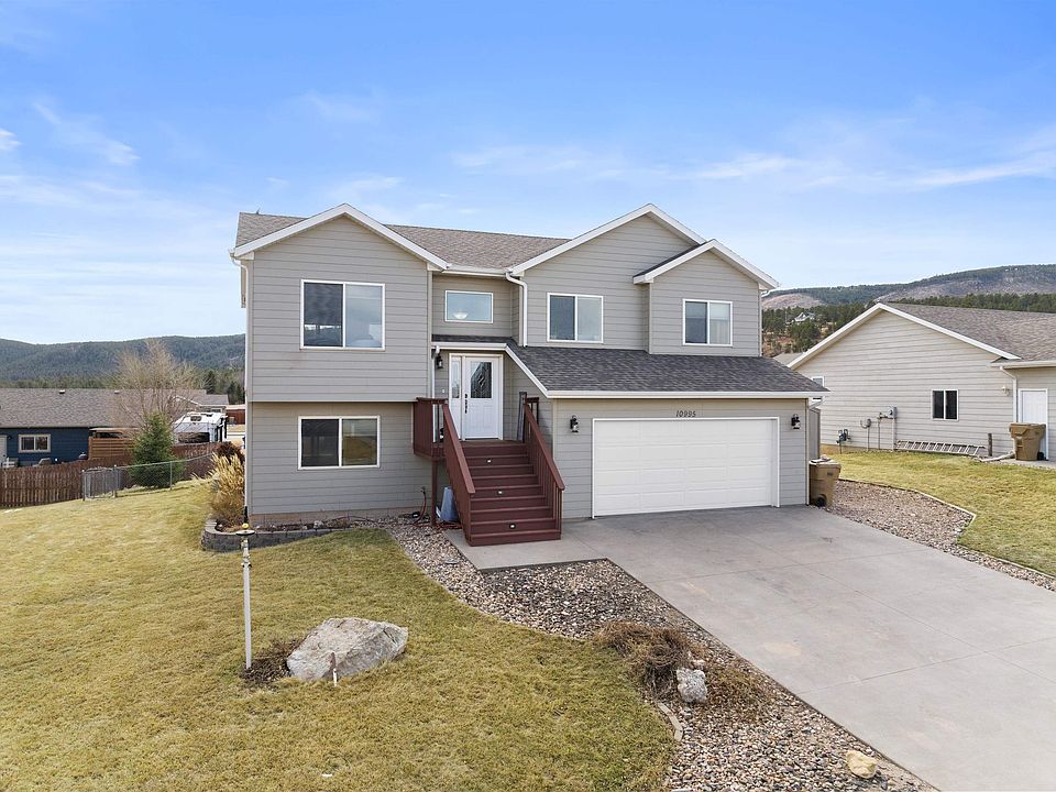 Call or Text Listing Agent - Kellie Peotter - The Real Estate Center of Spearfish - 605-641-7295 for more information. Enjoy the backdrop of the Hills in this 4 bed/3 bath home - conveniently located and as cute as can be! Split foyer featuring an open-concept layout with plenty of natural light and great use of space. The main level has a primary bedroom with an ensuite bath and two nicely sized bedrooms with a 2nd bath. The lower level has a large, bright family room, 4th bedroom and the 3rd bathroom. Walk right out to the backyard from the family room and enjoy a fenced yard with a sprinkler system, a playset, and a shed for additional storage. The A/C, furnace, and water heater were all new in 2023! Buyer is responsible for verifying all information on this MLS document.