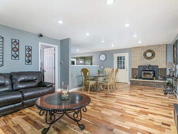 Conveniently located 1.1 acre ranch-style home in Thornton. This home has been completely remodeled including kitchen cabinets, countertops, wood flooring throughout, bathrooms, lighting, fixtures, and doors. Everything! This home is super versatile and offers a range of possibilities on both the inside and outside. The actual house features 3 bedrooms upstairs with 2 bathrooms with walk-in showers. The basement features another 2 bedrooms and 1 bathroom. This home has a newly added walk-out basement/separate entrance. You can keep it as a full 5 bedroom, 3 baths for a large family OR you can separate it and live upstairs and rent downstairs. Exterior offers a 2 car garage, large carport, and 1325 sqft workshop. 2.5 year old state of the art septic system, tank, leach field, and lift system. Please note this home is in a flood zone, however, the premium on the insurance policy is nominal so do not let this deter you. Zoning A2 allows for horses, Adams County allows 4 horses/acre. NO HOA community.