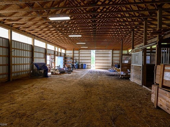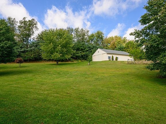 Ultra-private 5 Bedroom, four bath, approx 3664 ft.² center hall colonial on 6.91 acres with a 60 x 40 POLE BARN! Follow the 1100-foot-long drive lined with trees and fire bushes to your own slice of paradise. This property is surrounded by mature trees, and you cannot see your neighbors. Covered front porch opens to two-story foyer with turned staircase. The foyer is flanked by a formal living room and dining room and opens to an enormous 29 x 15 eat in kitchen with a large island and double doors out to a spacious patio and vinyl trellis. 24 x 18 great room with cathedral ceiling and gas fireplace. There is a full bath, first floor laundry, mudroom, and additional room off the living room. This could be used as an additional living suite. The master bedroom has a vaulted ceiling, plant shelf, master glamour bath, and large walk-in closet. There are three bedrooms with double closets and two additional full baths on the second floor. 60 x 40 pole barn with water, electric, two HORSE S