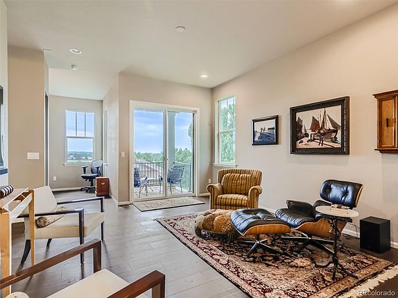 RARELY AVAILABLE DUPEX-style home in the highly sought after community within Legacy Ridge West. If you're ready for LOW MAINTENANCE, LUXURY and LOCATION, this is the one! Mountain views from the main level above roof-tops and fabulous last lot on the cul-de-sac and ! Home is right next to paved walking paths that lead to walking trails, and wetlands alongside Dry Creek: Side of home opens to spacious grass area plus the long driveway creates even more privacy! *SELF CONTAINED MAIN LEVEL: Covered porch leads to front entrance and main level open floor plan with tall ceilings. A lovely, upgraded kitchen features gas range, double-oven, hard surface countertops and 42” cabinets, then opens to dining room, living room, well-located study/office with built-in shelves and views, and private covered deck. Extra wide plank wood floors featured on the main level. Main level primary bedroom features tall tray ceiling. DOUBLE PRIMARY SUITES/LIVING AREAS: one on main level, the other on lower walkout basement level! The main level suite has handy laundry room with utility sink directly adjoining large walk-through closet. *WALKOUT BASEMENT: Spacious Family Room opens to private ground level patio. Public records say 3rd bedroom-- this would be easy adaptation if owner hadn't preferred the current music concert/family room configuration and other viable spaces could also be bedroom. Over-sized 2-car garage is drywalled *TWO HOAS—Pool and clubhouse included in the dues and community rotating exterior paint scheduled to paint the exterior of home this autumn. . Too much to list, come see for yourself and fall in-love with all this home and community has to offer!