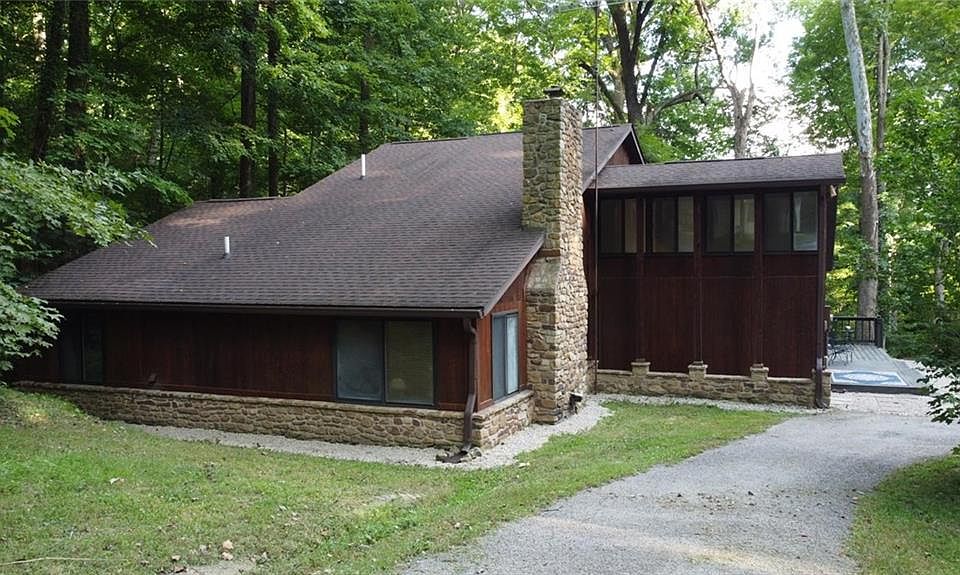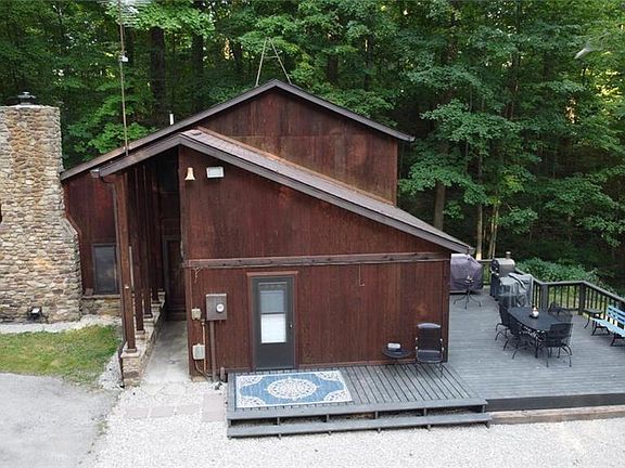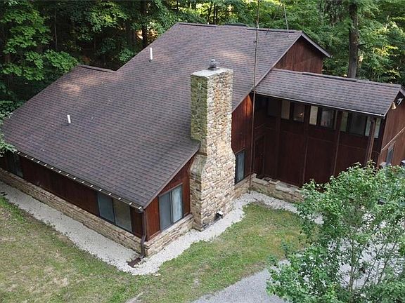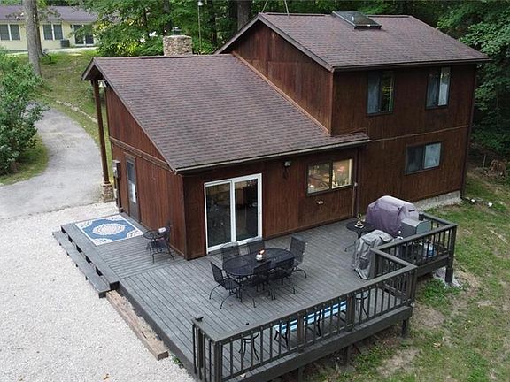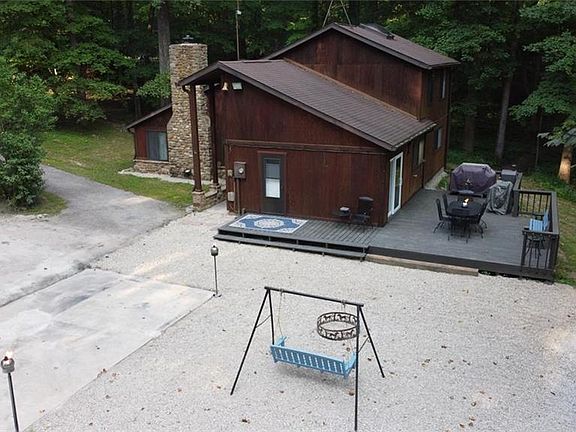 Beautiful Lake Home bordering State Forest features large eat in kitchen w/cherry cabinets, vaulted ceiling & wall to wall pantry storage. Two skylights, oversized windows & patio doors throughout for tons of natural light. Large living Rm features a multifuel stove, bordered in beautiful natural stone. Off the living Rm sets a spacious home office w/vaulted ceiling & gas log fireplace. Renovations include new flooring, ceiling fans, & fresh paint on the main flr. Serenity & wildlife surrounds you on the huge wrap around deck. Commercial heat pump. 16x16 barn style shed & new 12x28 Amish built shed, both with reinforced flooring for all your toys. Quick access to Cagles Mill Lake with your personal boat slip included. A must see!