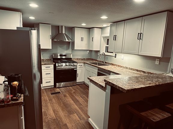 This home has been completely refurbished! It now has completely new ceilings, completely new, painted walls, completely new laminate flooring, completely new kitchen cabinets and countertops, completely new stainless steel refrigerator, stove with hood, dishwasher, and kitchen sink. The bathrooms have been updated with new sinks and fixtures. The light fixtures and receptacles have been completely replaced for the whole house. The windows and storm doors have been completely replaced with Pella windows and storm doors for a more energy efficient home. The plumbing has been changed to pex plumbing.