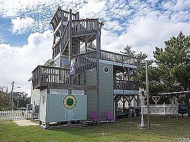 Ultimate Nags Head beach home. Sound front community with great amenities! Between the home amenities and neighborhood amenities, you will be overwhelmed with the possibilities with this gorgeous home . Nestled in the beautiful Nags Head Cove neighborhood, this home has something for everyone in the family. This home offers, both sound and ocean views from the roof level sundeck and the crows nest. Has oversized lot with large backyard and enclosed outdoor shower with hot and cold water. Newly renovated bathrooms and upstairs kitchen. Updates include new luxury vinyl plank (LVP) flooring, new appliances upstairs. All 3 bedrooms, and living area have been newly painted along with new carpet throughout. New hot water heaters for both levels and a new A/C unit for the ground level living area. On the ground level, this home has a large outdoor seating area with hot tub power available. Downstairs also includes kitchenette w/ 2nd refrigerator and separate laundry room with 2nd washer and dryer . Suited for all, this home has a bedroom and luxurious bathroom along with a half bathroom on the ground floor. This could be a great mother-in-law suite or additional income with separate entrance! 1 year old 6' treated wood privacy fence. Just 400 yards to the ocean with a direct public beach access and 3 Miles from Jennette's Pier and 1 mile from Nag's Head pier. One block from the Outer Banks Hospital and 2 miles from the Outer Banks Outlet shops. Large 12x24 building with 2 lofts, carpet, wood paneling, along with an A/C unit and own electrical subpanel with outlets and lighting that is ready for power to be ran. Very well maintained home with regular maintenance throughout the year. 25,000 sq.ft parcel on the right of the house is owned by the HOA with no potential new housing construction . There is a community pool available May-October, as well as club house, volleyball area, boat ramp and sound access with small HOA fees. This home is on the end of a private drive with plenty of parking spaces. Room for 9 + vehicles. This home is in an X flood zone that was changed from an AE flood zone in 2019.