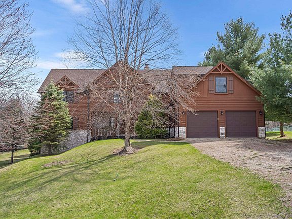 REDUCED! Luxury custom built 5 bedroom, 5 Bath executive home located at the end of a private cul-de-sac with beautiful lake views of Apple Canyon Lake in picturesque Jo Daviess County. This 5130 sq. ft. brick and stone home, with Transferable BoaT Dock 10-62-3 located just around the corner, is the perfect full time or weekend residence. Enter the home from the welcoming covered front porch into the magnificent Great Room featuring a 27 ft. high cathedral ceiling, and spectacular views enjoyed from a wall of windows. This inviting room boasts a cozy multi-sided floor to ceiling stone fireplace which is shared with the contemporary chef’s kitchen. The kitchen includes granite countertops, eat-at peninsula, stainless appliances, an abundance of cabinets, plus a generous dining area. There are 2 patio doors from which you can access the deck located in the dining area, along with the cozy wood fireplace. The primary suite is located on the other side of the Great Room, and includes a large walk-in closet along with an elegant bathroom, and a patio door to access the deck as well. The laundry room and a full bath complete the main floor. The upper level boasts 4 incredible bedrooms including a guest suite with a walk-in closet and private bath, and a spacious bonus bedroom that can accommodate a large number of weekend guests. A spacious loft with beautiful views of the Great Room, 2 additional bedrooms and a full bath complete this floor. The lower level was made for entertaining. It includes a huge family room with a wood burning fire place, and a generous game room with patio doors to the outside. Mechanicals include 2 high-efficiency furnaces and air conditioners, a 200-amp electric service, and 2 gas water heaters. Enjoy the views from the beautifully landscaped grounds along with a cozy firepit. A 2+ stall attached garage completes this must-see property. This splendid is property is lake living at it’s best.