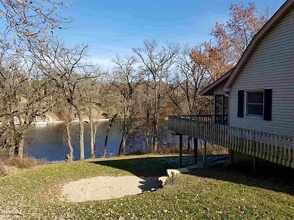Open lake view as soon as you pull in the drive. Cute barn style cottage with excellent living space. The main floor offers an open kitchen to dining/living room space with double door access out to covered screened porch overlooking Hawthorne Bay, which is no wake area and perfect for kayaking, wake boarding, swimming, etc.. Two bedrooms a full bath and main floor laundry room round out the main floor. Upstairs are two spacious bedrooms with a half bath. The lower level walk-out has great space for entertaining with an open family room with lake views and access out to back yard, bar/kitchen space which is mostly completed and a 2nd full bath. Also attached to the lower level is a great storage room for housing all your lake toys. This lakefront cottage is conveniently located just a short distance to Apple Canyon Lake swimming pool, restaurant, marina & clubhouse. Two of the bathrooms have been recently remodeled as well as other updates such as new carpeting, some electrical & HVAC, exterior landscaping as well as dock.