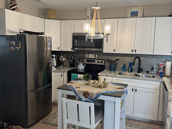 Step inside to find bright, open living spaces filled with modern coastal decor, central A/C, and a fully equipped kitchen featuring stainless steel appliances everything you need for effortless beachside living.