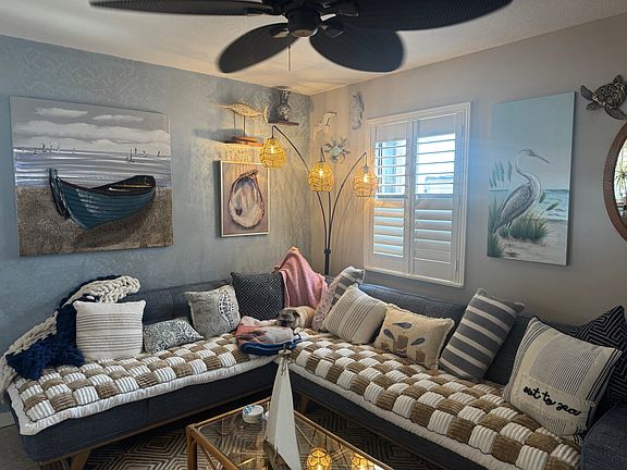All-seasons sunroomCoastal decorComfortable sleeper sofaFully equipped kitchenUpdated bathroomsScreened-in rear porchStainless steel appliances