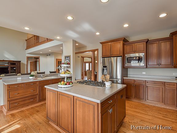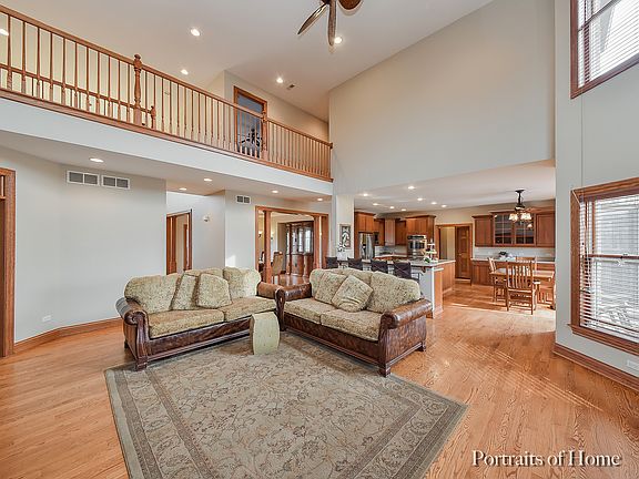 Great curb appeal on a private cul-de-sac! Open floor plan & great room sizes make this home great for family & entertaining. Spacious 1st Floor Master Suite with large walk-in closet & generous Master Bath with whirlpool tub & oversized shower. Great Room with floor-to-ceiling fireplace & backyard views. Very open Kitchen with oversized island & breakfast bar counter and SS appliance package. 3 Bedrooms up with huge Bonus Room - great for kid space, workout room, 2nd office or multiple uses. Fully excavated English Basement (unfinished) with rough-in plumbing, fireplace & 8 windows offers great possibilities. And don't forget the 6-Car Garage! 4-Car tandem section & 2 car - Bring the toys - great storage. Gorgeous grounds with stone outcroppings, paver patio with fire pit - sunsets! Must see!! 38+ PG eBrochure.