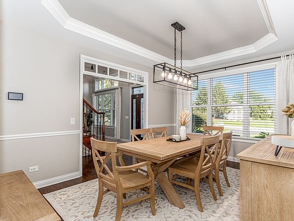 Incredible estate home in Williamsburg Green - around the corner from Elgin Country Club - highly rated Burlington Central School District #301. Interior repainted 2022, new lighting, other upgrades. BRING THE TOYS: Car/Hobby Barn (35' x 23') - heated & air conditioned - epoxy coated floors. Custom finishes throughout. Dramatic vaulted ceilings in the Living Room. Spacious Dining Room with Butler's Pantry. Custom Kitchen with white cabinetry, granite countertops, computer desk station, walk-in pantry - open to Family Room & Sun Room. 4 Bedrooms upstairs - all bedrooms have private or semi-private baths. Fireplace in Master Suite - dual walk-in closets & whirlpool tub with separate shower. Spacious professionally finished basement with Bar/Lounge, Theater, Game area, Exercise Room. Enjoy the gorgeous setting with mature trees & landscaping - large deck with covered area, fire pit & built-in grill station. MUST SEE!! 45+ page eBrochure.