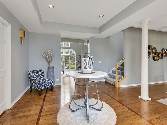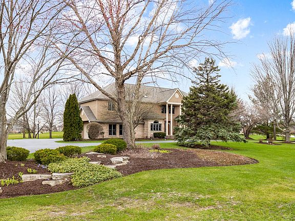 This fabulous home on a premier large lot in school district 301 (Burlington) is nestled into two acres. Situated in Williamsburg Green subdivision, the country club and golf course are a short golf cart away through neighborhood paths. This meticulously maintained and updated homes has all the features to make it comfortable and move-in ready. With recent updates to include new flooring and paint throughout, a complete roof and gutter screens, primary bath remodel, Trex deck, computer screened kitchen refrigerator and expoxy flooring in the heated garage, you are sure to find this a wonderful home. The two story fireplace and view from windows in the spacious eat-in kitchen leave plenty of room for entertaining. The counter and cabinet space is abundant. Stainless steel kitchen appliances include a cooktop, JennAir dishwasher, new computer refrigerator, double ovens, warmer oven, microwave and a hot water dispenser. A large walk-n pantry and full eat-at-counter compliment this extra large kitchen. The family room contains a full wet bar with wine rack, ice maker and a fireplace for relaxing evenings at home. The first floor den creates a perfect work space. With a sunroom that leads to the deck and built-in grill, and a brick paver patio with outdoor fireplace, you will find yourself planning to spend time there with family and friends. The primary suite starts with a relaxing, open sitting area which spreads to the bedroom are through double doors showcasing a spacious room with a beautiful trey ceiling and two large walk-in closets. The suite is complete with a spectacular, newly renovated bathroom with a soaking tub, spa walk-in shower, double sinks and skylights. The Jack and Jill bathroom among two of the bedrooms, this could easily be an in-law arrangement ready. The second floor boasts an open-style view overlooking the 2-story fireplace and seating, 9' ceilings throughout the home, 2nd floor laundry, three complete and separate HVAC systems, 6-panel doors, 11 roof skylights, a heated 3-car garage, horseshoe driveway, an in-ground irrigation system, and professional landscape lighting all demonstrate the quality and quantity of extra amenities to make your life luxurious and carefree. Close to shopping, schools, entertainment, restaurants and I-90, this home meets the needs of privacy with everything you need close by! No disappointments here! This home is move-in ready!
