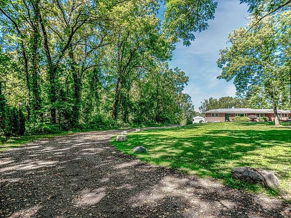 Welcome to your own private retreat. Enter the long beautiful private drive to this sprawling brick ranch home on just under 2 acres surrounded by woods. This property features many new updates, including a new custom kitchen built in 2020. The beautifully updated kitchen boasts all new appliances, a sprawling butcher block island, quartz countertops, beautiful tile backsplash, and oak cabinets. The stunning kitchen opens into spacious living and dining areas outfitted with a fireplace and an open concept to the rest of the home. From the kitchen step out onto the recent and expansive back porch and a 2024 saltwater pool installed for ease and enjoyment. Off the kitchen area is a substantial great room with oversized windows looking out to the serene backyard and access to the back porch. This ranch features 3 bedroom and 3 bath. The master suite includes a private full bathroom. Main-level bath off the kitchen was remodeled in 2024 with a beautiful glass-tile shower. Large laundry room features 2019 LG washer and dryer and plenty of storage. In addition to the open concept main level, perfect for entertaining with its charm and recent updates, the home features a wonderful walk out basement adding flexible living space. The home has two separate entrances, off of the quiet Hidden Lakes Dr for privacy and another off of Russell Rd for easy access. This home also boasts a custom built shop put up in 2019. The shop is 32 x 28, and at almost 900 sq. ft is perfect for car enthusiasts or extra storage. Inside the shop you will find a car lift that will be staying for new owners. Convenient location, close to shopping and dining all the while feeling like country living.