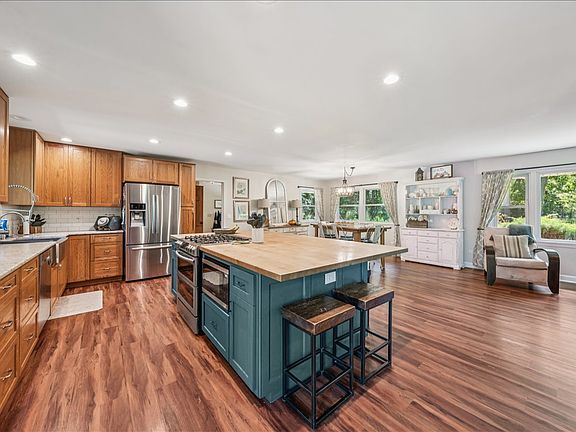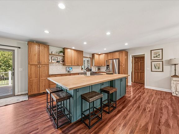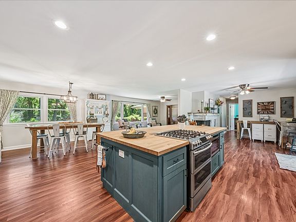 Sprawling brick ranch homeSaltwater poolSurrounded by woodsButcher block islandOversized windowsPrivate driveNew custom kitchen