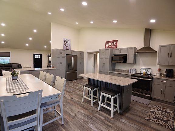 Here's your opportunity to have a quiet country horse property close to town. Enjoy all the sunrises and/or sunsets from your full length front and back porches. Beautiful new single level home has 3 bedrooms all with walk-in closets and 2 full baths. The master bath boasts a custom tiled shower and giant soaker tub, quartz countertops and accents! The bedrooms are carpeted, the master bathroom is tiled and the rest of the house has LVT flooring. The large vaulted ceilings in the kitchen and living rooms open the house up beautifully. The custom cabinets provide almost endless storage space and are topped with beautiful quartz countertops. The shop is 36'x36' and has a one bedroom apartment. The home sits on 3.14 acres that is landscaped with a large established yard with underground sprinkler system. Approximately 1 acre fenced for livestock, including corral and loafing shed. All kitchen appliances are included plus the washer, dryer and yard pump. In the shop the refrigerator and the microwave are included.