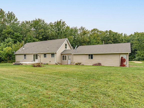 Looking for serenity and nature? Look no further!! Amazing setting on 64 wooded acres and a spacious Cape Cod home, plus 2 pole barns and an oversized attached 3 car garage! This 4 bedroom, 3 bath home has the master bedroom with master bathroom and walk in closet on the main floor and another bedroom and bath. There is also main floor laundry. All bedrooms have walk in closets and are spacious. The 2 main floor bedrooms and stairway carpet are new.