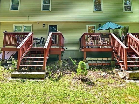 We are TWO HOUSES IN ONE!.Duplex style living.NO HOA FEES. MASTER DEED and CONDO DOCS in hand. Easy to rent. Save yourself years of hassles, work completed by current owners; including new roof, two new central air units, new windows. Each unit offed with full appliances including washer dryer refrigerator oven and dishwasher.FULL unfinished basement space on each side. Could be converted into living space.Large BACK YARD complete with two decks and a SHED.Only .3 miles to the local train station. Each unit has three large bedrooms and two baths, one half and one full.The first floor half bath with the perfect spot to add a shower and/or convert to full bath.Perfect resale OPTIONS already separate townhomes can be SOLD separate.Expanision options on the unit 13 side.RENTS similar to Boston rents with out the hassles.1985 living space with clear division of rooms.Perfect for at home work space.Clear division of the property feels like a bungalow each side with it's own personality