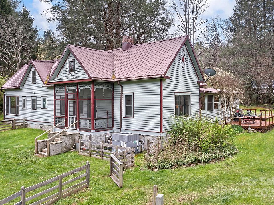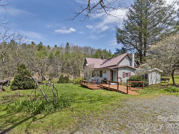 Create your Dreams on this Amazing Farm Property in Weaverville! Original Queen Anne Farmhouse built in the 1920s is one of a kind! Large primary bedroom with ensuite bath and picture window overlooking the pond. Two living rooms and three full bathrooms in the main home. Large tobacco barn and other outbuildings, with multiple additional home sites on the dynamic 23 acres. Great mix of wooded and cleared land with trails throughout. The newer 2nd home has own driveway and sits on an elevated knoll separate from the main home. This property models serene privacy for the ideal farmstead or family compound! Three wells on site, with potential hand pump in main home. Watch the geese swimming on the pond fed by your own meandering creek. Enjoy your morning or evening beverage on the sunny front deck! Wonderful location, just 10 mins from Main St Weaverville, and only 20 minutes from the bustling shops and restaurants of Asheville. Experience the magic of this land for yourself!