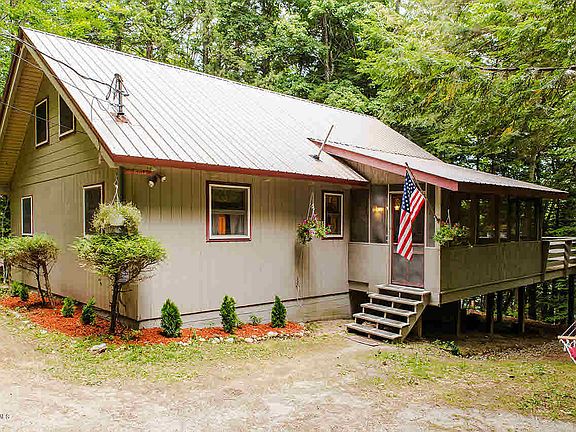 Two homes on this gorgeous piece of property. Includes both a year round residence and a seasonal log home with 125' of direct waterfront on private Friends Lake. Spend summers making memories from the waterfront deck of the seasonal guest house, or cozy up and enjoy the dramatic beauty of winter in the Adirondacks from the warmth of your year-round lake view home. Convenient to Gore Mountain skiing and all the Adirondacks have to offer