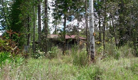 This listing also includes adjacent vacant lots TMKs: 3-1-1-21-73 and 3-1-1-21-70, for a total of 3 lots and 9 acres. Not often seen, three adjacent three acre lots in Fern Forest, lots together are approximately 375ft wide by 1043ft deep. Nine acres of land to farm, build homes, or just fix up the existing cabin to use as a vacation retreat. Cabin is not habitable and needs interior restoration and exterior work. Lots are located on a wide unpaved road which is in very good condition and less than a mile from a paved road. Sign posted on center lot. Approximate lot boundaries marked by spray paint. Directions: Hwy 11 to MP 22.5, turn on Kahaualea Road, then left on Kaleponi Road. Lots are on makai side, 375ft before Uluhemalu Rd Volcano village is about 6 miles away, or Keaau about 17mi, Hilo about 28mi.