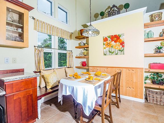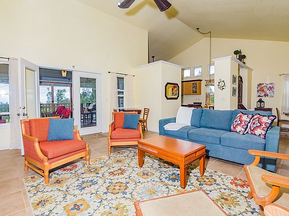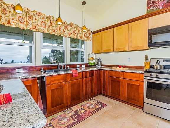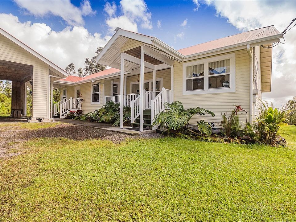 Privately set behind a curved drive is a beautiful custom home with many features you don't often find in this price range. Step onto the covered front lanai with slate tile and you can already feel the sense of love and pride of ownership this home exudes. The main living area greets you with soaring cathedral ceilings and access to the large 14x18 rear lanai. Windows on either side keep the space breezy and bright. Just off the living area is a huge kitchen with large pantry, ample cabinet space, granite counters, Whirlpool gas range, Frigidaire dishwasher, Maytag refrigerator, and microhood. But, perhaps the best feature of the kitchen is the built-in window seat and shelving which creates a very charming eat-in nook. Or perhaps, it's the direct access to the rear lanai and distant ocean view you can enjoy from the kitchen sink? You'll have to decide! Also located just off the living area is a sunny formal dining room with vaulted ceilings. Plenty of room to enjoy family meals here! Opposite the kitchen and dining area you'll find a cozy sitting room with gas fireplace perfect for snuggling up on those chilly Fern Acres nights. Adjacent to the sitting room is a spacious master suite, main bath, and two smaller bedrooms. The master suite offers views of the expansive lawn, walk-in closet, private bath with walk-in shower and dual shower heads, access to the interior laundry area, and access to the rear lanai. The main bath is a very functional space with a separate area for the deep soaking tub and toilet allowing occupants of the other two amply sized bedrooms to juggle getting ready with ease. Enjoy the screened-in rear lanai, play a game of catch on the expansive rear lawn, enjoy the bounties of the numerous plantings, or tinker away in the huge 24x36 carport with mezzaine storage. Located just 30 minutes from Hilo, in a most serene setting, this home is a rare Fern Acres beauty ideal for those who enjoy the little touches that create one amazing package!
