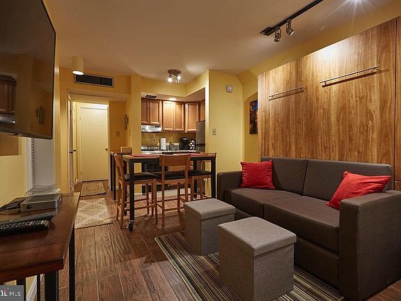 Smartly appointed studio apartment located next to the Supreme Court and steps away to the US Capitol is the perfect pied-a-terre. This unit packs a lot of punch with gas cooking, granite countertops, SS appliances, dining area, ample living space, beautifully remodeled bath, 3 nice closets, ceramic tile floors, and a separate entrance that leads to a tranquil private courtyard. New murphy bed system will convey and other furnishings negotiable. Condo fee includes all utilities. Short-term rentals allowed. Walk to 3 metro stations, Union Station, National Mall, Eastern Market, Navy Yard, Library of Congress, museums and more - 92 walk score!