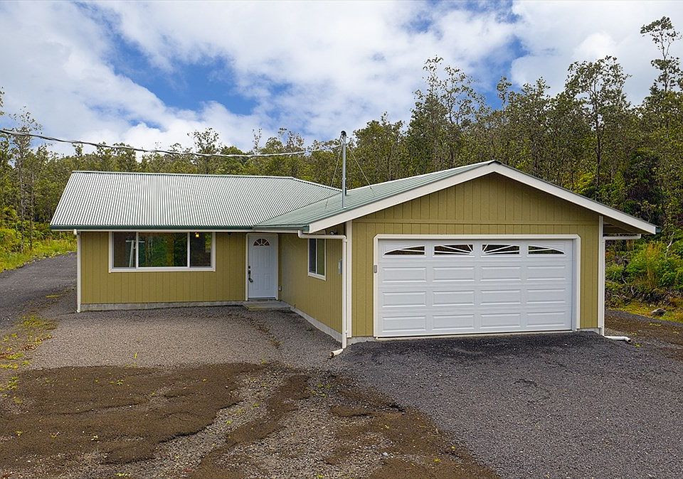Brand new construction in Royal Hawaiian Estates. As you enter, the quality workmanship is quickly noticed. Warm natural wood laminate flooring adds contrast to the clean painted walls. The open floor plan allows you many options to design and decorate the spacious living area. Onto the beautiful kitchen that features quartz counters, dark wood cabinets and new stainless steel appliances, sure to please the chef of the home. Down the hall from the living area, you'll find the three bedrooms and guest bath. The master bedroom features a full bath with a lovely tiled shower/tub. Outside the living area is a cozy covered lanai that overlooks the fully cleared lot. Use your vision and green thumb to create a tropical landscape on the fully cleared 18,000+ SF parcel. Another great feature is the two-car garage with additional storage and utility sink. Location is ideal, only a few minutes away from Volcano Golf & Country Club, Kilauea Lodge and other great local restaurants of Volcano. Truly, a warm and inviting place to call home.