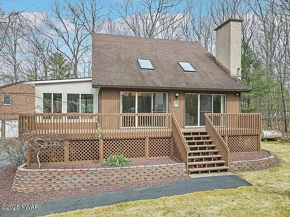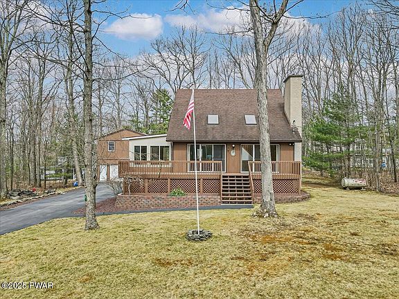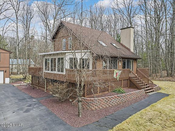 Welcome home to this VERY well cared for home in an EXCELLENT location within walking distance to Lake Wallenpaupack. NO HOA, within Paupack Township, where short term rentals are allowed, with township approval. This home needs NOTHING and is move in ready!!! Main house has 3 bedrooms, 2 full baths, a loft, an awesome four season room plus a walkout basement.Step outside and enjoy ample decking on both the front and side of the house as well as a well manicured lawn, firepit, flag pole and paved driveway. The biggest BONUS is the immaculate detached 2 car garage w/ 2 full bedrooms and a bathroom above it! This rare find won't last and has SO MUCH to offer the right buyer! Mother/Daughter potential in a nice and very quiet area. Home is located very close to Wallenpaupack Schools, Rt. 590, Rt. 6, Lake Wallenpaupack, Walt's Landing Marina, the town of Hawley and shopping!