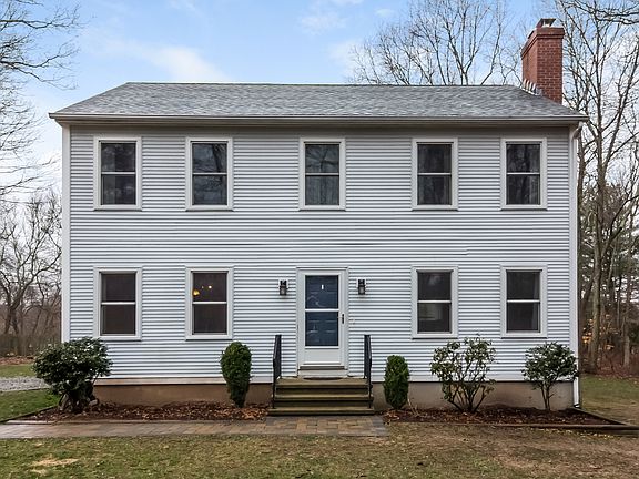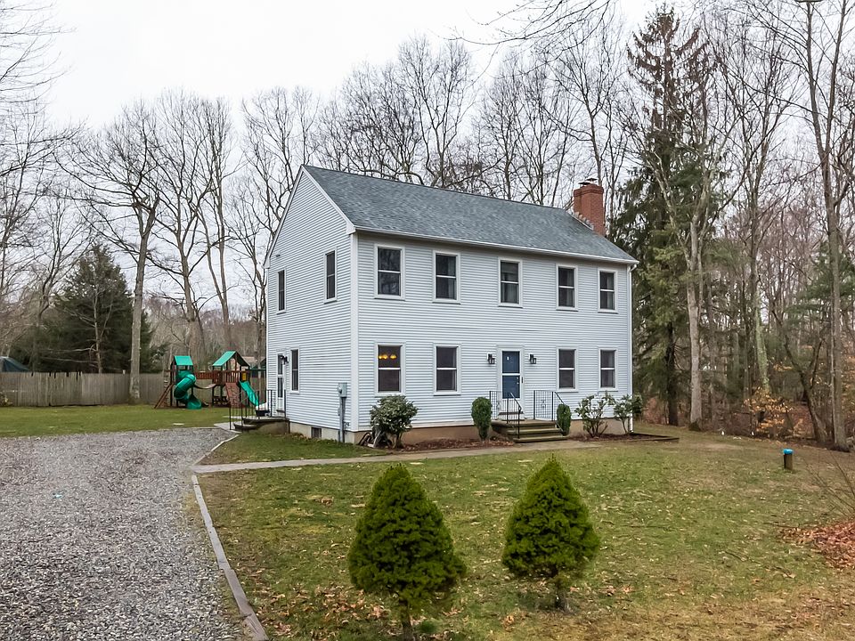 Bright and pristine, this cul de sac 3 bd/3 bth colonial is located in a private setting yet so close to town, rogers lake, and sports fields. Well maintained with new roof 2017, new thermopane windows 2015, new patio, and finished lower level playroom with laundry closet. With the additional 300sqft family room in the lower level this house lives large. Gleaming wood floors on the first level, formal dining room and large living room with wood burning fireplace insert. Close to commuting highways and award winning schools.