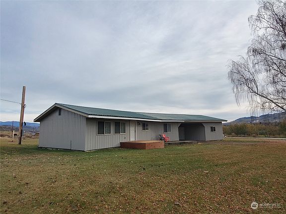 PRICE REDUCED! BRAND NEW UPGRADES THRU-OUT highlight this 1750+ sf, 2 bedroom/1.75 bath home with Spectacle Lake view west of Tonasket. Privately located on 2 acres with Whitestone irrigation, the home has spacious living room, kitchen with appliances, walk-in pantry and dining area, office area, separate utility room with W/D, water softener. Primary bed/bath suite with walk-in closet. Upgrades include wiring, plumbing, paint, flooring, fixtures, deck, appliances, windows and more. Detached garage with workshop, plus convenient attached carport/breezeway, and full RV hookup. Landscaped yard with partially fenced acreage. $327,400 H-3201/MLS2181601