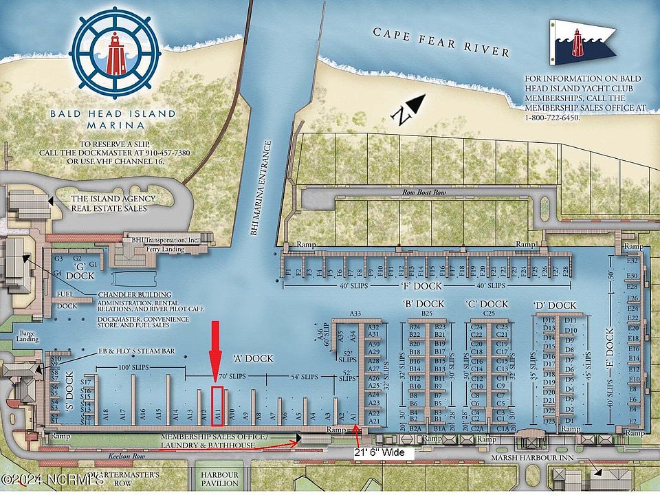 Premium 70' boat slip at the Bald Head Island Marina. Nestled along the stunning North Carolina coastline, this meticulously maintained boat slip offers more than just a place to dock your vessel; it provides an exclusive gateway to a world of coastal adventure and relaxation. Excellent location within the BHI Marina. 70-foot slip.