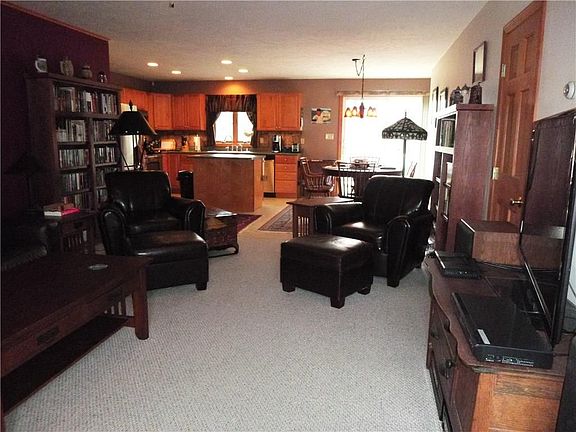 One floor condo in a quiet charming setting not far from town. Open kitchen , living, & dining area concept w slider to a sunny deck., tile floors, & fully applianced kitchen. 2 first floor bedrooms & laundry. Attached 1 car garage w/opener w/entrance directly to kitchen & the large dry basement which has high ceilings offering lots of storage space w/great possibilities for finishing it off. This Condo community is for adults 55 years of age or older.