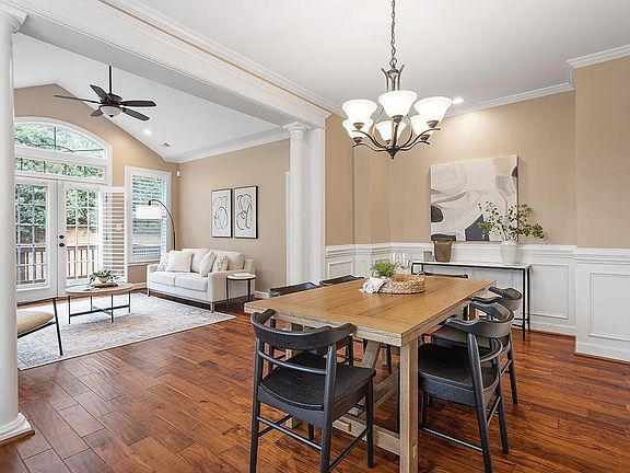 This move-in-ready 3 bedroom end-unit townhome in the sought after Abernathy Place, is just minutes from UNC, I-40, Duke, RTP and RDU and features upgrades galore! The two-story townhome has a first floor primary bedroom with beautiful bathroom and large walk-in closet. Upstairs, there are two large bedrooms, also with walk-in closets, a full bath with dual vanity, and an open loft area. Enjoy morning coffee on the back deck or head to the patio off the kitchen for evening grilling. Current owners have renovated almost every inch since 2019, including adding crown molding throughout, new wood flooring in main living areas, new carpet in upstairs bedroom and primary closet, updated hot water heater, updated HVAC, gorgeous custom wooden shutters, new comprehensive ADT security system, Bosch dishwasher, updated bathrooms, light dimmer switches in kitchen and family room, new garage door and more! This is a cannot miss!