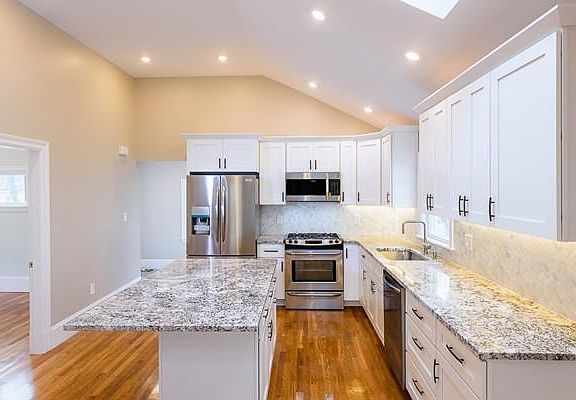 Fall in love with this newly renovated 3 bedroom, 2.5 bathroom ranch in desirable West Roxbury. You'll enjoy open concept living in the custom kitchen with state of the art, energy efficient appliances. This house was fully gutted, fully insulated and is equipped with central AC, energy efficient windows, skylights and beautiful custom moldings. The kitchen is open to a spacious and sun filled living room with gorgeous soaring ceilings. The large master bedroom has a stunning master bathroom and a walk in closet. The large deck off the living room is great for entertaining. The finished room in the lower level is perfect for a playroom, guest bedroom or entertainment room. This house is steps away from public transportation, Joyce Kilmer Elementary School, and bustling Centre Street which has several restaurants and shops. Don't miss your opportunity to live in a beautiful, new home in a great neighborhood.