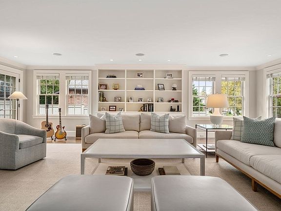 Stately 1929 Brick Center Entrance Colonial in Belmont's prestigious Presidential neighborhood with high end, thoughtful renovations and additions is better than new construction! No detail has been overlooked. Impressive, bright living room with slate surround fireplace and 2 french doors opens to patio and private, landscaped yard. Wonderful entertaining space in expansive kitchen with 10' ceilings, inset cabinetry, Viking 6 burner range, SubZero fridge & 6'x9' marble topped island. Formal dining room, den and half bath complete this level. Primary bedroom suite is the perfect retreat with custom WIC and marble bath with vaulted ceiling boasting steam shower & jetted tub. 2 additional good sized bedrooms (one with office), renovated bathroom and linen room on the second level. 4th bedroom hideaway with bath on third level. LL boasts 30'x23' family room, home gym, mudroom & laundry room. 2 car garage with electric charger. Close to schools & easy commute to Cambridge and Boston.