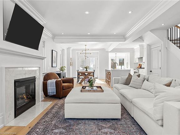 Beautifully updated 4+1 bdrm, 2 bath home w/ in-law suite on mature 25’ x 125’ lot in the heart of Mimico - perfectly blending historic charm w/ modern elegance. Surfaced parking for 1 vehicle + an extra-wide interlock walkway (19). Foyer w/ heated herringbone tiling & built-in storage (19). Open-concept main lvl w/ Boen Oak eng hrdwd flrs (22), oversized baseboards, upgraded lighting fix, & elegant crown moulding (22). Form liv rm w/ gas FP & marble surround (22). Sliding drs open to the den w/ built-in cab/shelving/desk - plus rough-ins for main-lvl laund. Formal din rm w/ French drs leading to the rear yard. Gourmet kitch w/ custom millwork, Silestone Calacatta Gold counters/backsplash (22), pantry, built-in coffee station, luxe app incl a panelled French dr Dacor fridge/freezer, GE Café 6-burner gas range/dbl oven w/ pot-filler, panelled Bosch dishwasher, centre island w/ seating for 3+, dinette w/ banquette & more. 2nd lvl feat incl a spacious primary bdrm, 3 add bdrms & an upd 4-pc bath (21) w/ heated flrs, shower/tub combo, & marble-topped vanity. F-fin lwr-lvl in-law suite w/ private side ent. Feat incl lam flrs (17), kitchenette w/ white cab, subway tile backsplash, S/S app, & quartz counters (17), a liv rm/rec rm, 5th bdrm—currently used as a gym w/ rubber flrs (22), 3-pc bath w/ glass walk-in shower, laund & storage. Ext upd incl roof shing (15), windows (19), Hardie board fibre cement siding w/ upgrd insulation (19), soffits, fascia, eavestroughs, & gutter guards (19). TimberTech composite decking on front porch/rear deck (19), privacy wall w/ frosted tempered glass (19), & a beautifully landscaped stone garden bed (19). Add upgrades incl a repaved drive (20) & an 8x10 storage shed on a poured concrete pad (20). Mechanical updates incl c-air (17), 200-amp elec serv w/ Tesla charger (18), tankless water heater (20), furn (22) & air exchanger (23). Exceptional location w/ easy access to downtown Toronto, parks, boutiques, dining, & more.