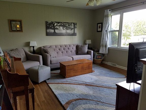 What a cute, freshly painted 2-bedroom ranch! Living room with hardwood floors, large kitchen with dining area, new glass backsplash. First-floor laundry. Full dry basement allows for additional living space if finished. 1-car attached garage. Deck off back of home with fenced back yard. Crawl space under the garage. Home is in move-in condition.